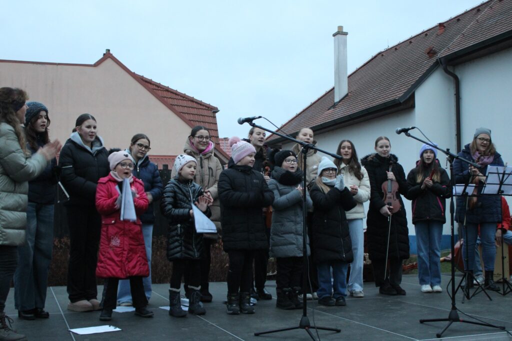 Pěvecký sbor naší školy zde zazpíval několik vánočních písní, někteří žáci vystoupili i s jinými hudebními složkami. Na závěr celého programu se děti s rozsvícenými lucerničkami a za zvuku koled vypravily k nazdobenému stromu, který paní starostka slavnostně rozsvítila.