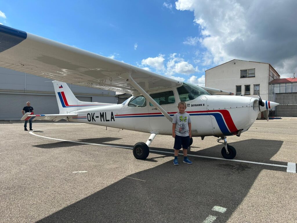 Let se uskutečnil v sobotu 6. září za krásného slunečného dne, kdy se nebe doslova otevřelo pro naše malé matematiky. David Trávníček ze 3.B, Ondra Hrbáček ze 3. A a Viky Klimoszová z 5. B vzlétli společně s pilotem Slováckého aeroklubu z nedalekého letiště v Kunovicích a během letu si z ptačí perspektivy prohlédli známá místa našeho malebného slováckého kraje. Kromě toho mohly děti během letu díky sluchátkům komunikovat nejen s pilotem, ale také s řídící věží.