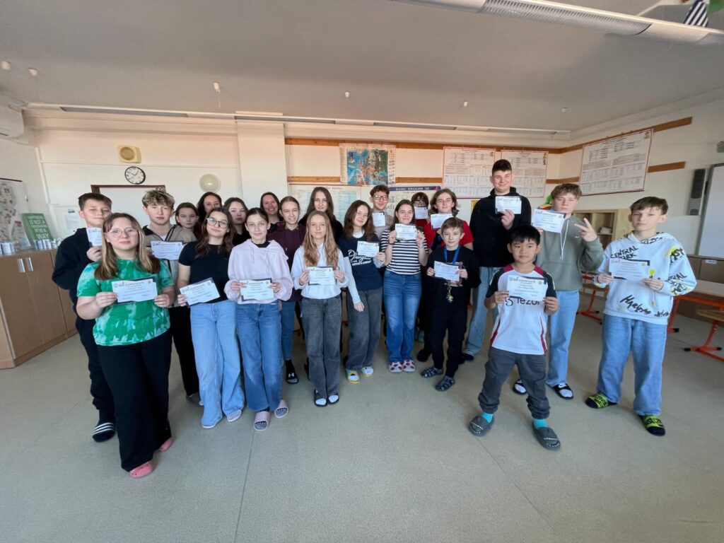 V úterý 20. prosince se na naší škole uskutečnilo tradiční školní kolo Olympiády v anglickém jazyce. Oficiální soutěž dělí účastníky na dvě kategorie – mladší žáky (6.–7. třída) a starší žáky (8.–9. třída). My jsme se však rozhodli soutěž rozšířit o kategorii nejmladších žáků (5. třída). Cílem bylo umožnit páťákům vyzkoušet si, jaké je to zapojit se do skutečné soutěže a získat cenné zkušenosti pro další ročníky i jiné soutěže.