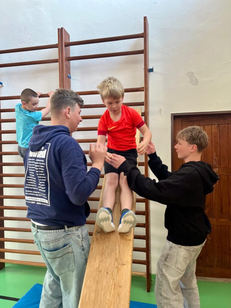 Starší žáci se své role zhostili velmi zodpovědně a s nadšením pomáhali mladším spolužákům nejen se správným provedením cviků, ale také je motivovali a povzbuzovali. Druháci si tak kromě pohybu odnesli i spoustu nových zážitků.