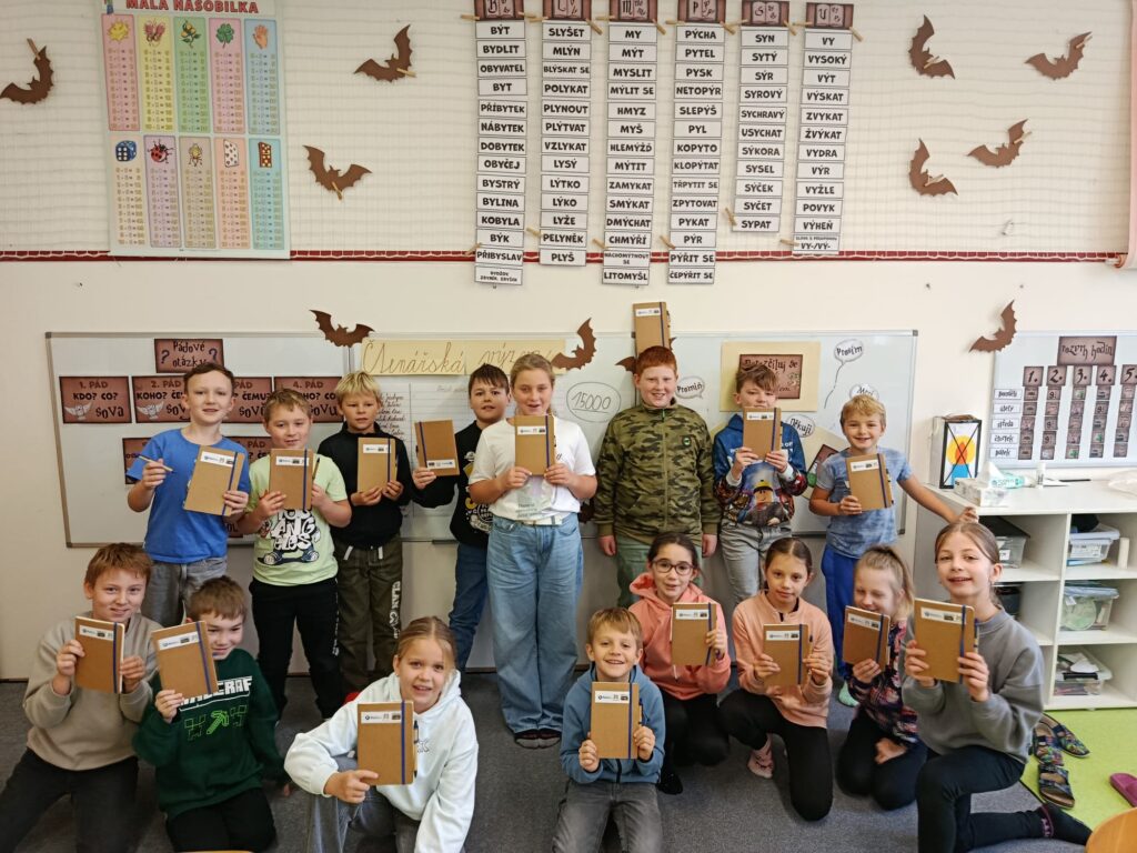V pátek 28. 11. 2025 se uskutečnila závěrečná část projektu – předávání cen všem žákům, kteří se do soutěže zapojili. Celkem bylo rozdáno 400 sešitů s potiskem loga naší školy a projektu Pro Bleu.
